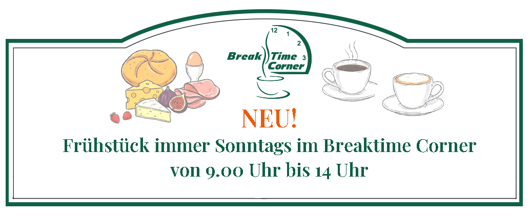 Seien Sie herzlich willkommen in unserem kleinen, aber feinen Restaurant/Bistro Breaktime Corner. Wir möchten, dass Sie Ihren Aufenthalt bei uns so angenehm und entspannt wie möglich erleben. In unserem Restaurant/Bistro Breaktime Corner arbeitet ein motiviertes und kompetentes Team mit Konzentration und Kreativität an der Qualität unseres Angebotes. Mit unseren frisch zubereiteten Gerichten, präsentieren wir Ihnen eine moderne „Neue Internationale Küche“. Wir wünschen Ihnen einen angenehmen Aufenthalt und einen guten Appetit. Ihr gesamtes Breaktime-Corner-Team